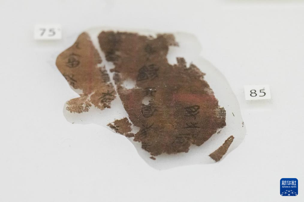 这是10月13日在湖南省博物馆拍摄的部分长沙子弹库战国帛书。