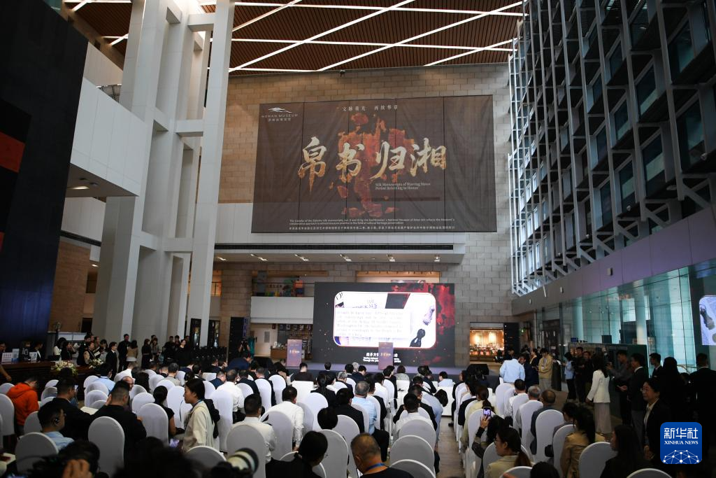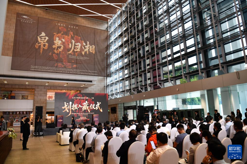 这是10月13日在湖南省博物馆拍摄的长沙子弹库战国帛书第二、三卷划拨入藏仪式现场。