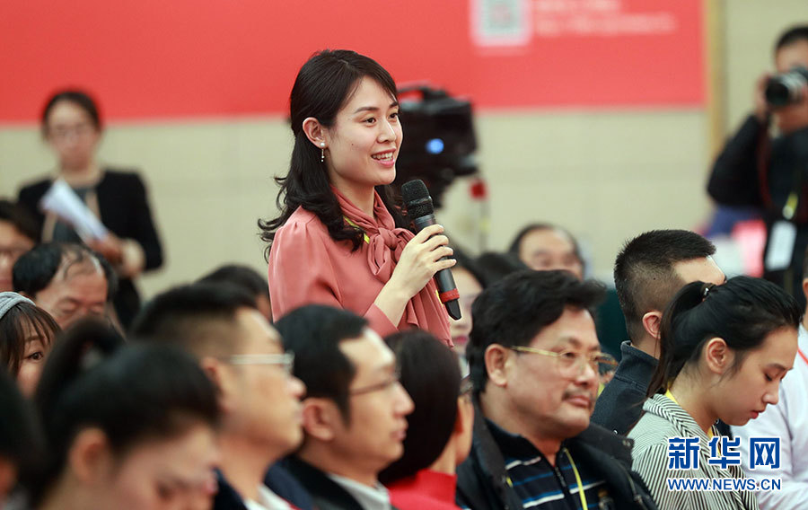 ??? 10月20日,十九大新聞中心舉辦集體采訪活動(dòng),主題為“文化發(fā)展開創(chuàng)新局面”。圖為經(jīng)濟(jì)日報(bào)記者提問。新華網(wǎng) 翟子赫攝