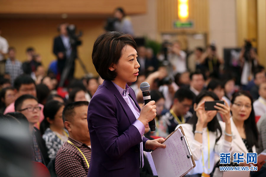 10月21日,十九大新聞中心舉辦記者招待會,邀請國家發(fā)展改革委黨組書記、主任何立峰,副主任張勇,副主任寧吉喆介紹以新發(fā)展理念為引領(lǐng),推進中國經(jīng)濟平穩(wěn)健康可持續(xù)發(fā)展有關(guān)情況,并回答記者提問。圖為中央電視臺、中國國際電視臺記者提問。新華網(wǎng) 郝廣鵬攝