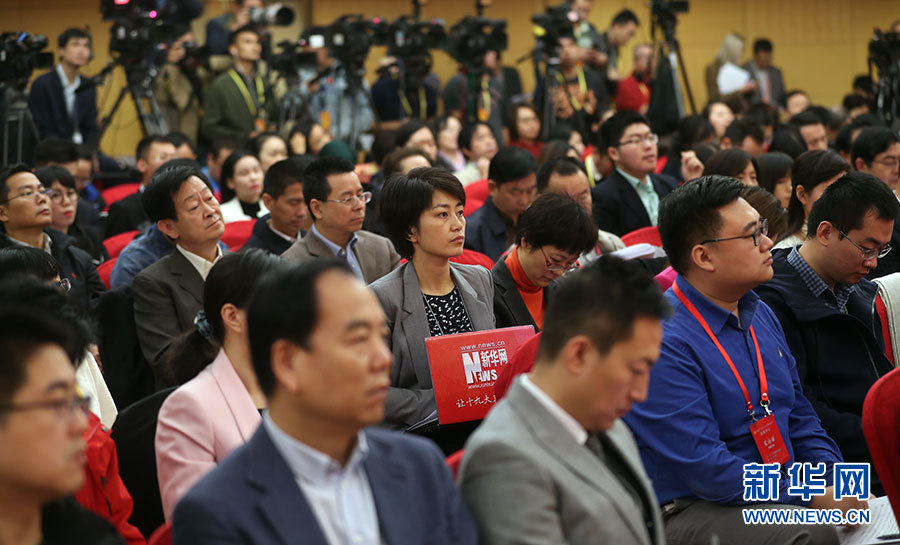10月22日,十九大新聞中心舉辦記者招待會,邀請教育部黨組書記、部長陳寶生,民政部黨組書記、部長黃樹賢,人力資源社會保障部黨組書記、部長尹蔚民,住房城鄉(xiāng)建設(shè)部黨組書記、部長王蒙徽,國家衛(wèi)生計(jì)生委黨組書記、主任李斌介紹滿足人民新期待,保障改善民生有關(guān)情況,并回答記者提問。圖為現(xiàn)場記者。新華網(wǎng) 郝廣鵬攝