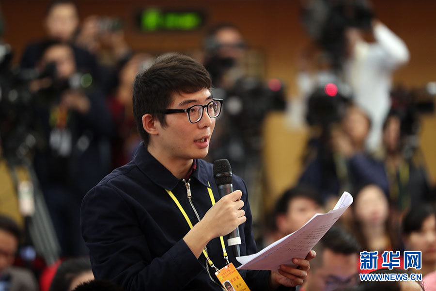 10月22日,十九大新聞中心在梅地亞中心二層新聞發(fā)布廳舉辦集體采訪活動(dòng),主題為“中國(guó)特色強(qiáng)軍之路邁出堅(jiān)定步伐”。圖為中評(píng)社記者提問。新華網(wǎng) 郝廣鵬攝