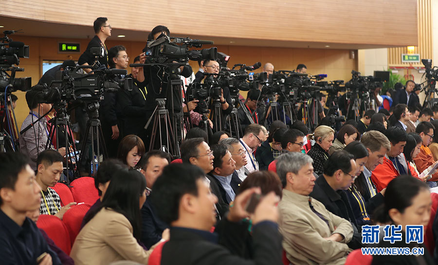 10月23日,十九大新聞中心舉辦記者招待會(huì),邀請(qǐng)中央財(cái)經(jīng)領(lǐng)導(dǎo)小組辦公室副主任楊偉民,環(huán)境保護(hù)部黨組書記、部長李干杰介紹踐行綠色發(fā)展理念,建設(shè)美麗中國有關(guān)情況,并回答記者提問。圖為現(xiàn)場記者。新華網(wǎng) 郝廣鵬攝