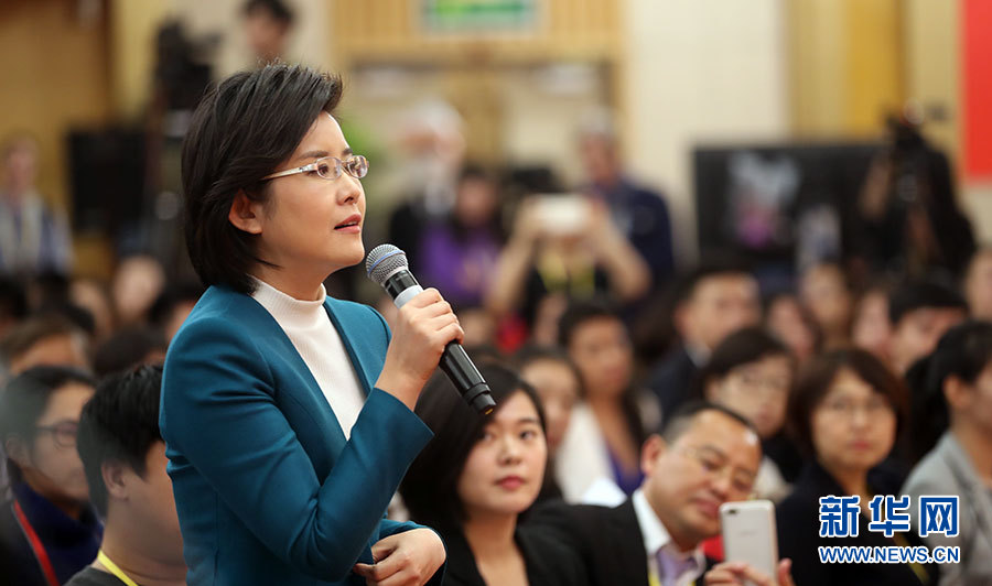 10月23日,十九大新聞中心舉辦記者招待會,邀請中央財經(jīng)領(lǐng)導(dǎo)小組辦公室副主任楊偉民,環(huán)境保護部黨組書記、部長李干杰介紹踐行綠色發(fā)展理念,建設(shè)美麗中國有關(guān)情況,并回答記者提問。圖為中央電視臺記者提問。新華網(wǎng) 郝廣鵬攝