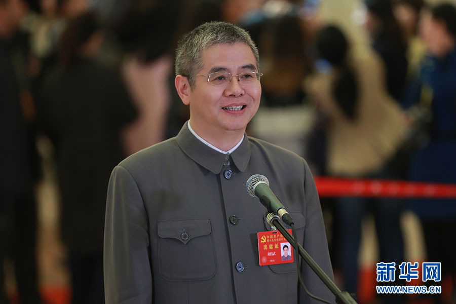 10月24日,人民大會(huì)堂舉辦“黨代表通道”第三場(chǎng)采訪活動(dòng)。圖為胡偉武代表接受采訪。新華網(wǎng)記者 翟子赫 攝