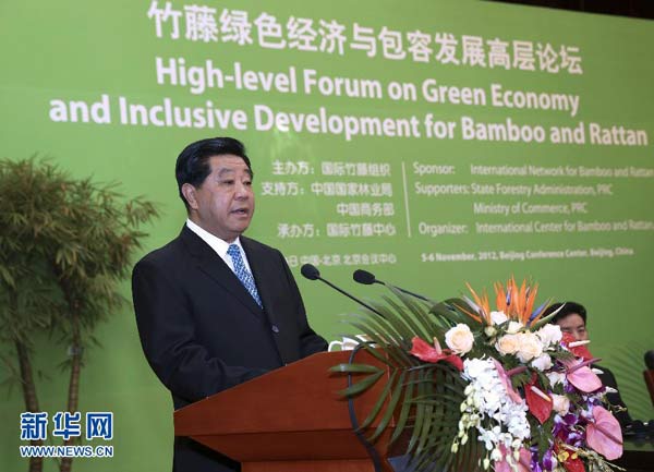 ??? 11月6日,全國政協(xié)主席賈慶林在北京出席國際竹藤組織成立15周年紀念大會并致辭。 新華社記者龐興雷攝