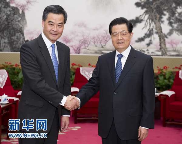 ??? 12月21日,國(guó)家主席胡錦濤在北京中南海會(huì)見(jiàn)來(lái)京述職的香港特別行政區(qū)行政長(zhǎng)官梁振英。 新華社記者 黃敬文 攝