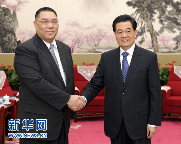 新華網(wǎng)北京12月21日電(記者李寒芳)國家主席胡錦濤21日下午在中南海會見了來京述職的澳門特別行政區(qū)行政長官崔世安,聽取了他對澳門當(dāng)前形勢和特區(qū)政府工作情況的匯報。