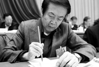 政協(xié)委員袁熙坤用毛筆做筆記 網友贊“有范兒”