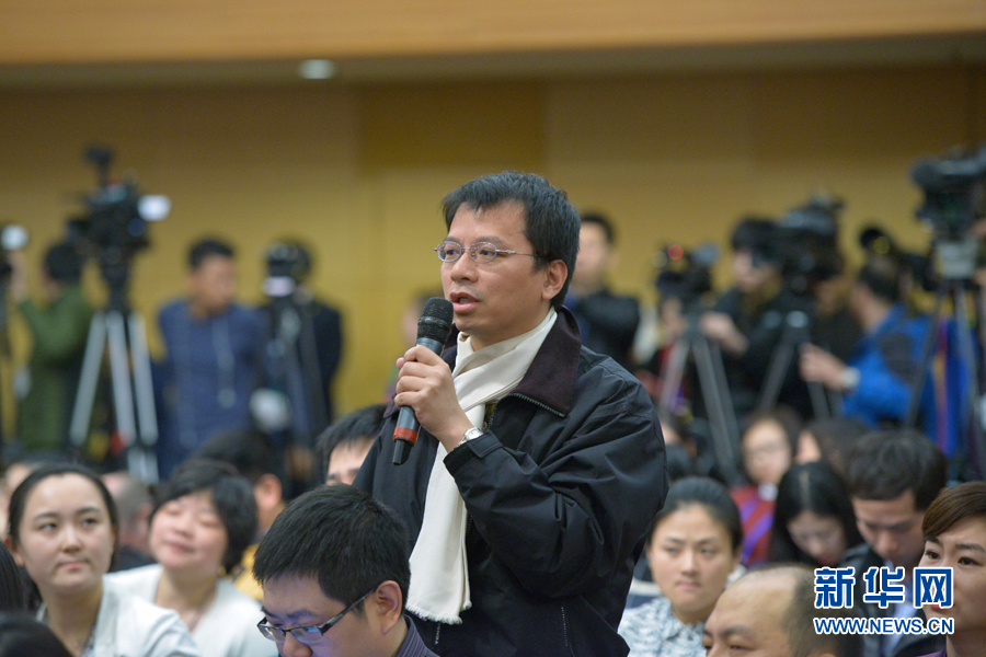 ??? 十二屆全國(guó)人大三次會(huì)議新聞中心于3月11日10時(shí)45分舉行記者會(huì),邀請(qǐng)科技部部長(zhǎng)萬(wàn)鋼就科技改革與發(fā)展回答中外記者提問。圖為臺(tái)灣工商時(shí)報(bào)記者提問。新華網(wǎng)/中國(guó)政府網(wǎng) 郭小天 攝