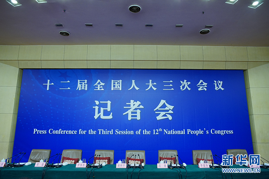 ????3月13日上午10時,十二屆全國人大三次會議新聞中心邀請四川大學(xué)校長謝和平、江蘇省教育廳廳長沈健、廣東省教育廳廳長羅偉其、海南大學(xué)校長李建保、貴州大學(xué)校長鄭強就完善高等教育治理結(jié)構(gòu)的相關(guān)問題回答中外記者提問。圖為記者會現(xiàn)場。新華網(wǎng)/中國政府網(wǎng) 郭小天 攝