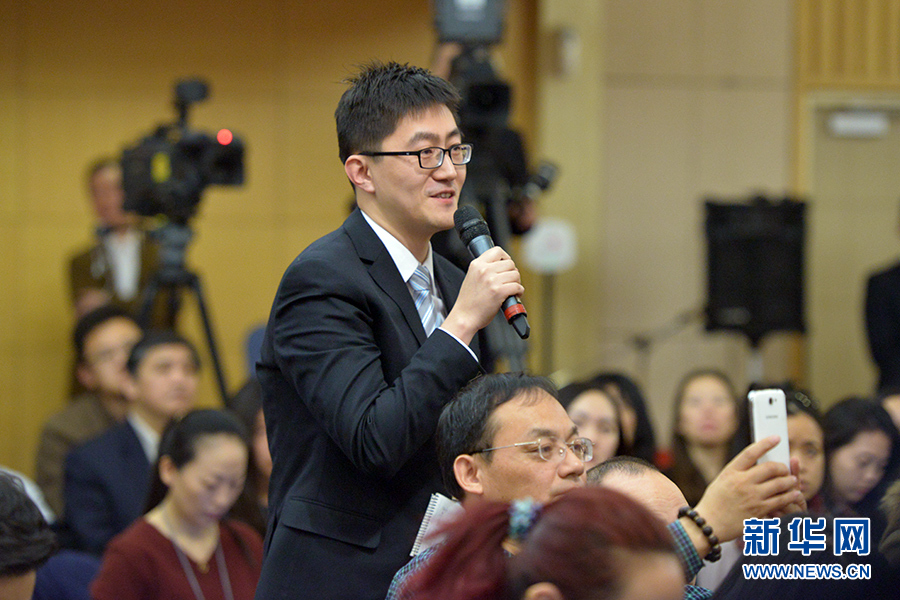 ????3月13日上午10時(shí),十二屆全國(guó)人大三次會(huì)議新聞中心邀請(qǐng)四川大學(xué)校長(zhǎng)謝和平、江蘇省教育廳廳長(zhǎng)沈健、廣東省教育廳廳長(zhǎng)羅偉其、海南大學(xué)校長(zhǎng)李建保、貴州大學(xué)校長(zhǎng)鄭強(qiáng)就完善高等教育治理結(jié)構(gòu)的相關(guān)問題回答中外記者提問。圖為中央人民廣播電臺(tái)、央廣網(wǎng)記者提問。新華網(wǎng)/中國(guó)政府網(wǎng) 郭小天 攝
