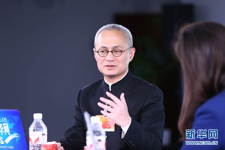 ??? 2015年3月14日,全國(guó)人大代表、鳳凰古城文化旅游投資股份有限公司董事長(zhǎng)葉文智做客新華會(huì)客廳。圖為葉文智與主持人交談。新華網(wǎng) 李江 攝