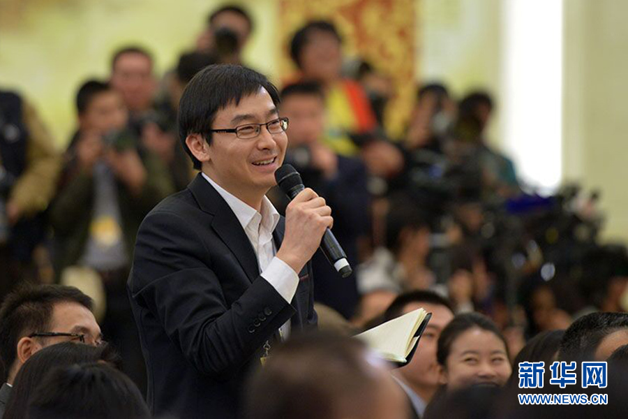 ????3月15日,國務(wù)院總理李克強(qiáng)在人民大會(huì)堂三樓金色大廳會(huì)見采訪十二屆全國人大三次會(huì)議的中外記者并回答記者提出的問題。圖為人民日?qǐng)?bào)記者提問。新華網(wǎng)/中國政府網(wǎng)?郭小天 攝