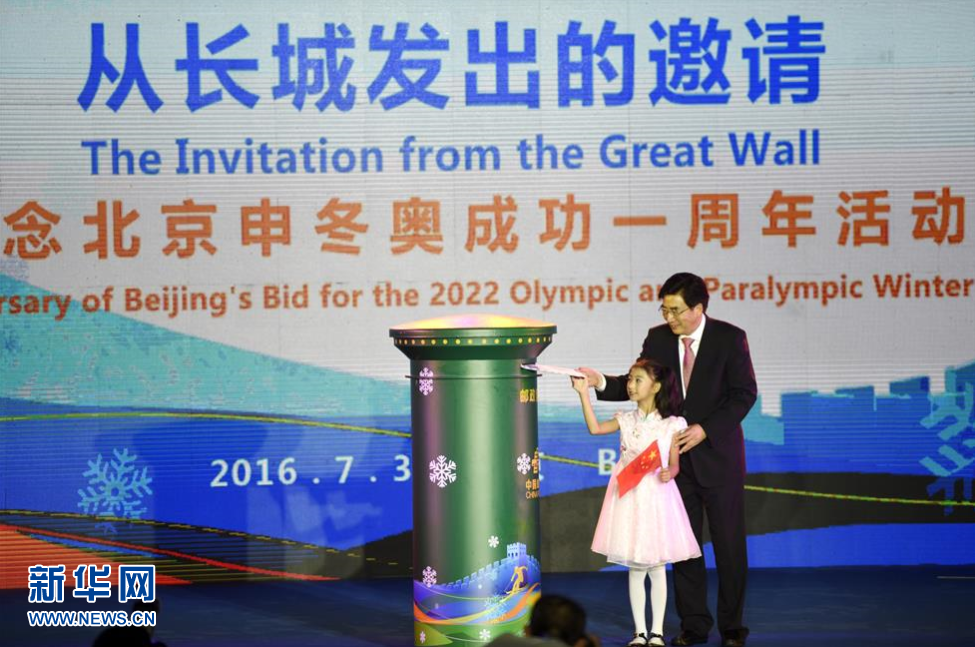 在活動現(xiàn)場,中共中央政治局委員、北京市委書記、北京冬奧組委主席郭金龍和一名少年兒童代表向郵筒投入第一封邀請函,象征著北京冬奧組委從長城發(fā)出邀請,面向全球征集北京2022年冬奧會會徽和冬殘奧會會徽設計方案。