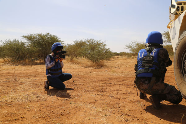 圖為記者在馬里采訪中國維和部隊