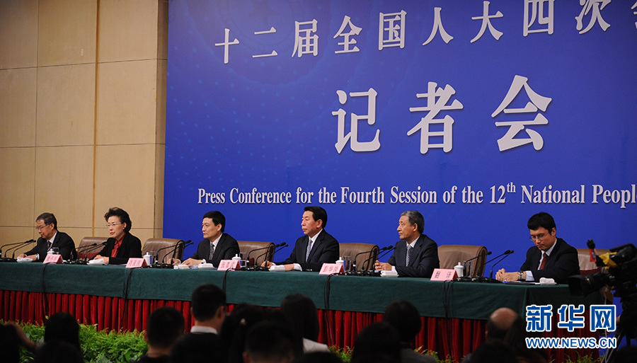 ?????十二屆全國人大四次會議新聞中心于3月12日(星期六)14時30分在梅地亞中心多功能廳舉行記者會,邀請國務院國有資產(chǎn)監(jiān)督管理委員會主任肖亞慶、副主任張喜武、副主任黃丹華和副秘書長、新聞發(fā)言人彭華崗就“國企改革”的相關(guān)問題回答中外記者的提問。圖為肖亞慶回答記者提問。新華網(wǎng)/中國政府網(wǎng) 陳杰 攝
