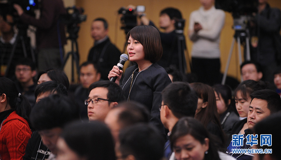 ?????十二屆全國人大四次會(huì)議新聞中心于3月12日(星期六)14時(shí)30分在梅地亞中心多功能廳舉行記者會(huì),邀請國務(wù)院國有資產(chǎn)監(jiān)督管理委員會(huì)主任肖亞慶、副主任張喜武、副主任黃丹華和副秘書長、新聞發(fā)言人彭華崗就“國企改革”的相關(guān)問題回答中外記者的提問。圖為經(jīng)濟(jì)參考報(bào)記者提問。新華網(wǎng)/中國政府網(wǎng) 陳杰 攝