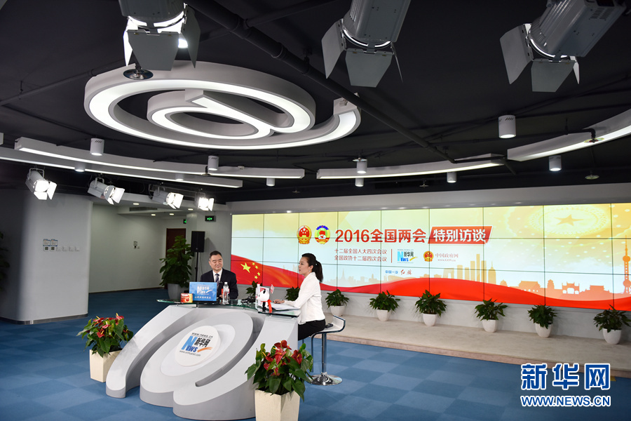 3月12日,全國(guó)人大代表,運(yùn)城市市長(zhǎng)王清憲做客新華網(wǎng)2016全國(guó)兩會(huì)特別訪談,與新華網(wǎng)網(wǎng)友在線交流。圖為王清憲在新華網(wǎng)直播間。新華網(wǎng) 付宇鵬 攝