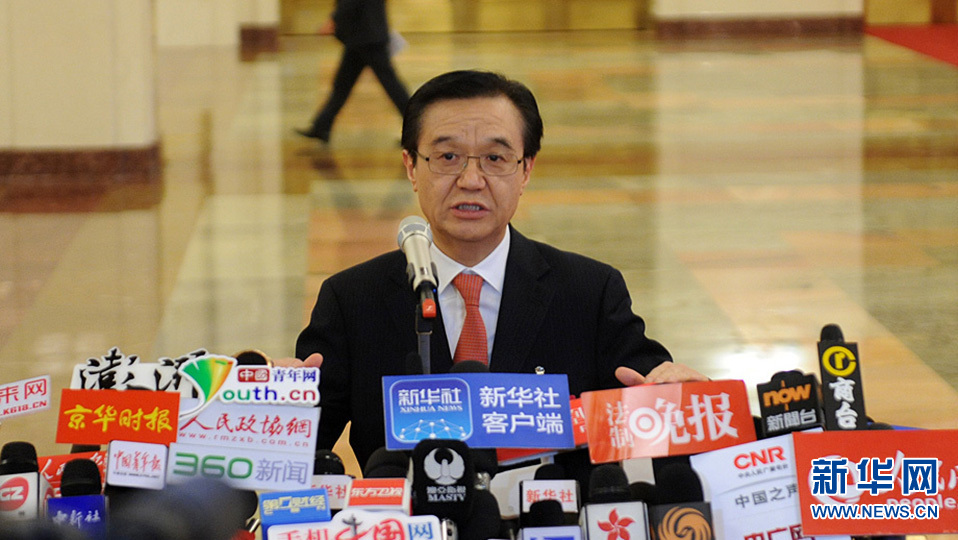 3月13日上午9時,第十二屆全國人民代表大會第四次會議將在人民大會堂舉行第三次全體會議,聽取最高人民法院院長周強關(guān)于最高人民法院工作的報告,聽取最高人民檢察院檢察長曹建明關(guān)于最高人民檢察院工作的報告。圖為商務(wù)部長高虎城在部長通道接受采訪。新華網(wǎng)/中國政府網(wǎng) 陳競超 攝