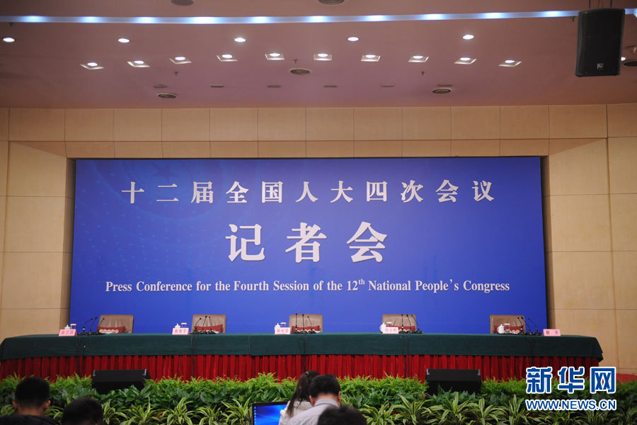 十二屆全國(guó)人大四次會(huì)議新聞中心于3月14日(星期一)10時(shí)在梅地亞中心多功能廳舉行記者會(huì),邀請(qǐng)交通運(yùn)輸部部長(zhǎng)楊傳堂、交通運(yùn)輸部運(yùn)輸服務(wù)司司長(zhǎng)劉小明、北京交通發(fā)展研究中心主任郭繼孚就“深化出租汽車改革與發(fā)展”的相關(guān)問(wèn)題回答中外記者的提問(wèn)。圖為記者會(huì)現(xiàn)場(chǎng),記者會(huì)即將開始。新華網(wǎng)/中國(guó)政府網(wǎng) 陳杰 攝