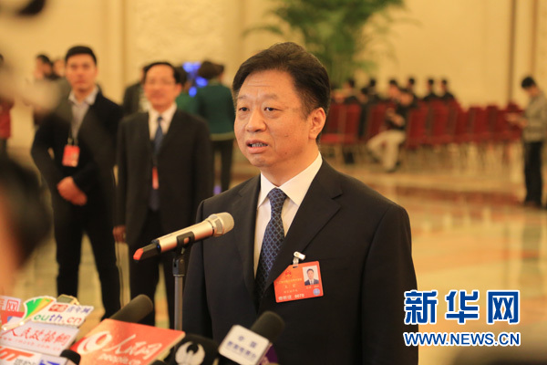 3月16日上午,第十二屆全國(guó)人民代表大會(huì)第四次會(huì)議在人民大會(huì)堂舉行閉幕會(huì),表決關(guān)于政府工作報(bào)告、關(guān)于國(guó)民經(jīng)濟(jì)和社會(huì)發(fā)展第十三個(gè)五年規(guī)劃綱要、關(guān)于2015年國(guó)民經(jīng)濟(jì)和社會(huì)發(fā)展計(jì)劃執(zhí)行情況與2016年國(guó)民經(jīng)濟(jì)和社會(huì)發(fā)展計(jì)劃等7個(gè)決議草案。圖為國(guó)家海洋局局長(zhǎng)王宏在“部長(zhǎng)通道”接受采訪。新華網(wǎng)/中國(guó)政府網(wǎng) 李何銘 攝