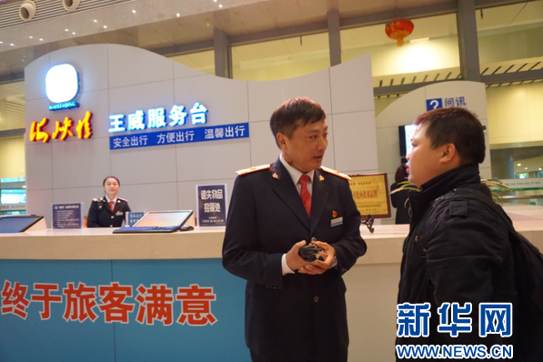 春運(yùn)期間,火車站客流量陡增,在擁擠的人潮中,藏藍(lán)色的身影會(huì)讓旅客的內(nèi)心平添一份安定。“您好,請(qǐng)問有什么可以幫您”,“您這趟車快到檢票時(shí)間了,2號(hào)進(jìn)站口人稍微少一點(diǎn)”,“退票請(qǐng)帶身份證到5號(hào)窗口”。兩小時(shí)下來,這樣的話王威重復(fù)了成百上千次,手上水杯里的水卻幾乎未少。