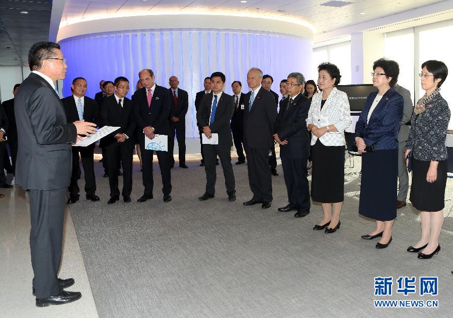 9月25日,中國國務(wù)院副總理劉延?xùn)|(前右三)在美國紐約參觀IBM沃森中心。新華社記者秦朗攝