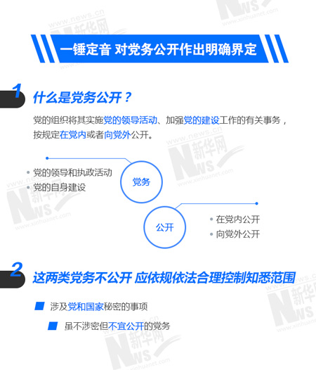 長期以來,關(guān)于什么是黨務(wù)公開,理論上和實踐中有一些不同觀點?!稐l例》對此作了明確界定,即黨務(wù)公開是指黨的組織將其實施黨的領(lǐng)導(dǎo)活動、加強黨的建設(shè)工作的有關(guān)事務(wù),按規(guī)定在黨內(nèi)或者向黨外公開。而且《條例》還規(guī)定了除涉及黨和國家秘密不得公開、依照有關(guān)規(guī)定不宜公開的事項外,一般應(yīng)當(dāng)公開。