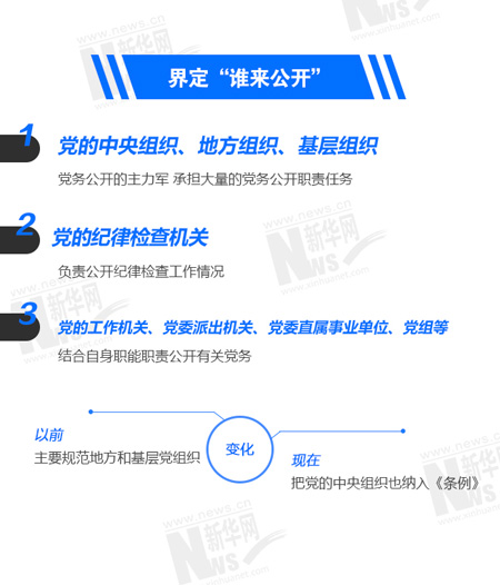 《條例》明確規(guī)定了公開范圍,主要包括向社會公開,在全黨公開,在本地區(qū)、本部門、本單位公開,對特定黨的組織、黨員和群眾公開。并規(guī)定了黨的組織應(yīng)當(dāng)根據(jù)《條例》規(guī)定的黨務(wù)公開內(nèi)容和范圍,編制黨務(wù)公開目錄,并根據(jù)職責(zé)任務(wù)要求動態(tài)調(diào)整。