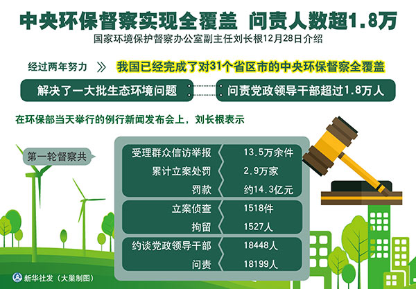 圖表:中央環(huán)保督察實現(xiàn)全覆蓋 問責(zé)人數(shù)超1.8萬 新華社發(fā) 大巢制圖