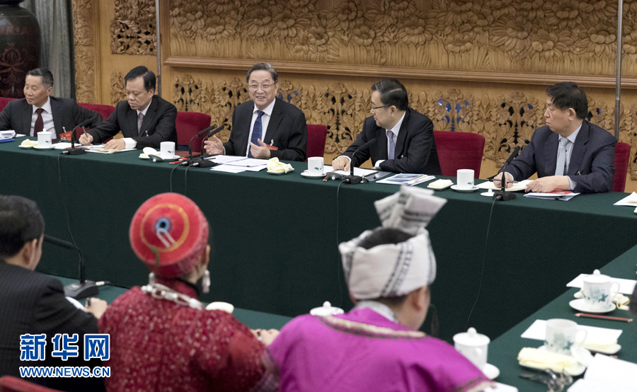3月9日,中共中央政治局常委、全國政協(xié)主席俞正聲參加十二屆全國人大五次會(huì)議貴州代表團(tuán)的審議。 新華社記者 丁海濤 攝