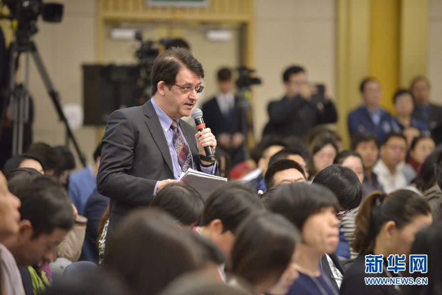 3月10日,十二屆全國人大五次會議新聞中心舉行記者會,邀請中國人民銀行行長周小川、副行長易綱、副行長兼國家外匯管理局局長潘功勝、副行長范一飛就“金融改革與發(fā)展”的相關(guān)問題回答中外記者的提問。圖為彭博新聞社記者提問。新華網(wǎng)/中國政府網(wǎng) 王健 攝