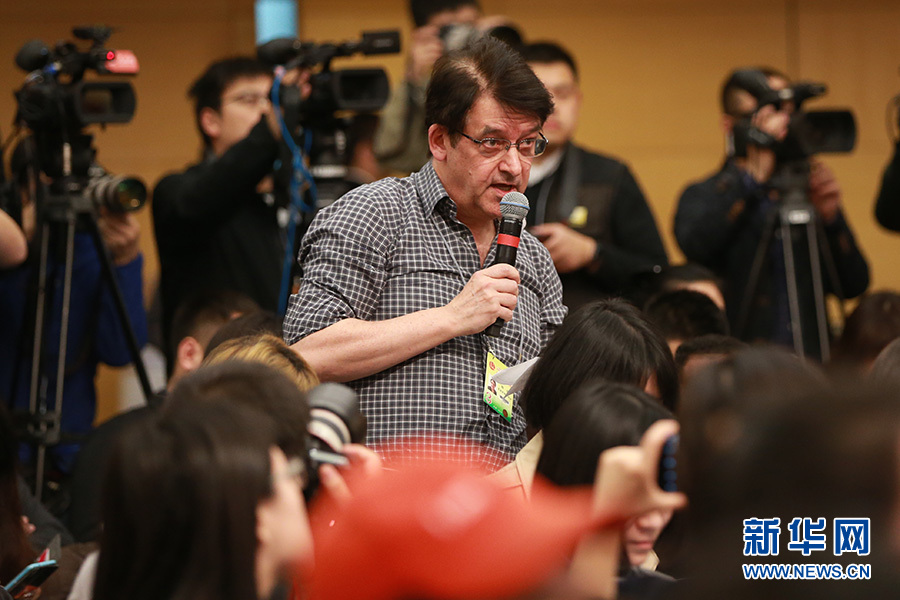 3月11日,十二屆全國(guó)人大五次會(huì)議新聞中心舉行記者會(huì),主題是“改革開(kāi)放調(diào)結(jié)構(gòu) 創(chuàng)新驅(qū)動(dòng)促發(fā)展”,商務(wù)部部長(zhǎng)鐘山、副部長(zhǎng)王受文、副部長(zhǎng)錢(qián)克明出席并回答中外記者的提問(wèn)。圖為彭博新聞社記者提問(wèn)。 新華網(wǎng)/中國(guó)政府網(wǎng) 王健 攝