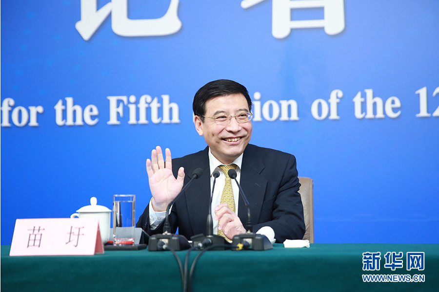 3月11日,十二屆全國人大五次會議新聞中心舉行記者會,邀請工業(yè)和信息化部部長苗圩、副部長辛國斌和總工程師、新聞發(fā)言人張峰就“推進(jìn)實(shí)施‘中國制造2025’”的相關(guān)問題回答中外記者的提問。圖為工業(yè)和信息化部部長苗圩。新華網(wǎng)/中國政府網(wǎng)?翟子赫 攝