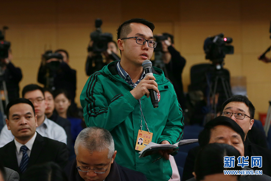 3月11日,十二屆全國人大五次會(huì)議新聞中心舉行記者會(huì),邀請工業(yè)和信息化部部長苗圩、副部長辛國斌和總工程師、新聞發(fā)言人張峰就“推進(jìn)實(shí)施‘中國制造2025’”的相關(guān)問題回答中外記者的提問。圖為經(jīng)濟(jì)日報(bào)記者提問。新華網(wǎng)/中國政府網(wǎng) 傅義洲 攝