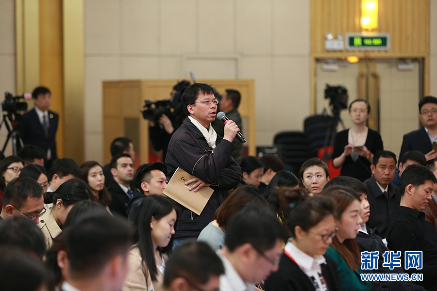 3月11日,十二屆全國(guó)人大五次會(huì)議新聞中心舉行記者會(huì),邀請(qǐng)工業(yè)和信息化部部長(zhǎng)苗圩、副部長(zhǎng)辛國(guó)斌和總工程師、新聞發(fā)言人張峰就“推進(jìn)實(shí)施‘中國(guó)制造2025’”的相關(guān)問(wèn)題回答中外記者的提問(wèn)。圖為臺(tái)灣旺旺中時(shí)媒體集團(tuán)工商時(shí)報(bào)記者提問(wèn)。新華網(wǎng)/中國(guó)政府網(wǎng) 傅義洲 攝