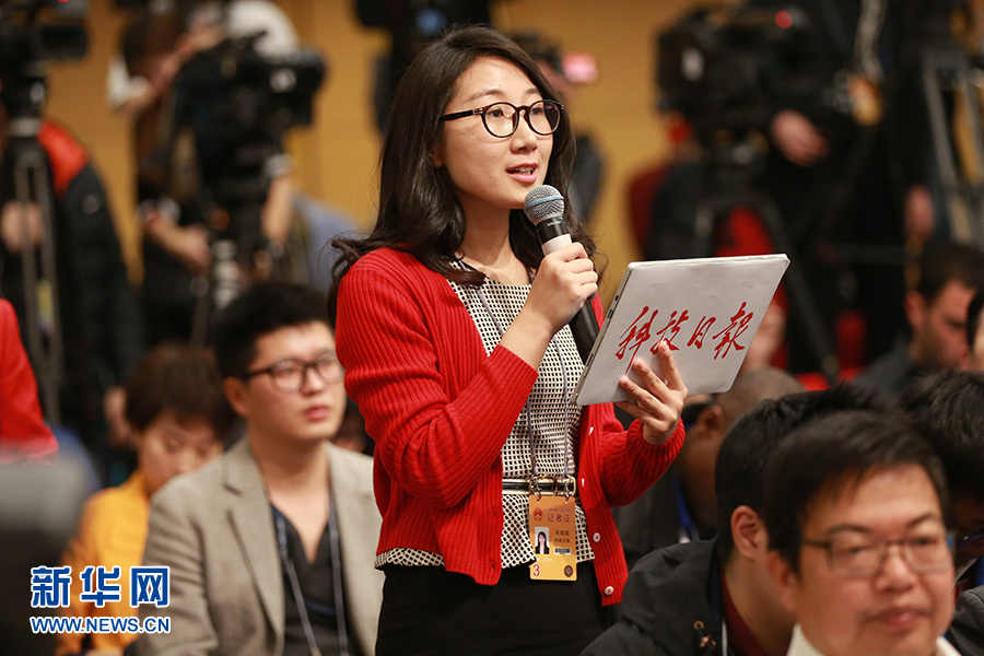 3月11日,十二屆全國人大五次會議新聞中心舉行記者會,邀請科技部部長萬鋼、秘書長徐建培就“2016年創(chuàng)新驅(qū)動發(fā)展戰(zhàn)略實施進展成效和2017年重點工作”的相關問題回答中外記者的提問。圖為科技日報記者提問。新華網(wǎng)/中國政府網(wǎng) 王健 攝