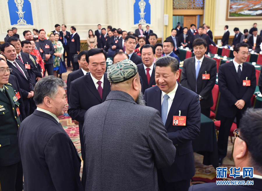 2017年3月10日,習近平在新疆代表團參加審議時說,要全面貫徹黨的民族政策,高舉各民族大團結旗幟,引導各族群眾增強對偉大祖國、中華民族、中華文化、中國共產黨、中國特色社會主義的認同,像愛護自己的眼睛一樣愛護民族團結,像珍視自己的生命一樣珍視民族團結,像石榴籽那樣緊緊抱在一起。