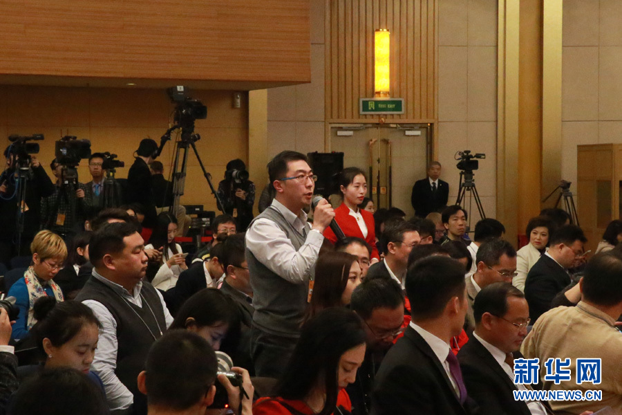 3月14日,十二屆全國(guó)人大五次會(huì)議新聞中心舉行記者會(huì),邀請(qǐng)國(guó)家質(zhì)檢總局局長(zhǎng)支樹(shù)平、副局長(zhǎng)兼國(guó)家認(rèn)證認(rèn)可監(jiān)督管理委員會(huì)主任孫大偉、國(guó)家標(biāo)準(zhǔn)化管理委員會(huì)主任田世宏就“質(zhì)量提升”的相關(guān)問(wèn)題回答中外記者的提問(wèn)。圖為中國(guó)食品安全報(bào)記者提問(wèn)。新華網(wǎng)/中國(guó)政府網(wǎng) 傅義洲 攝?