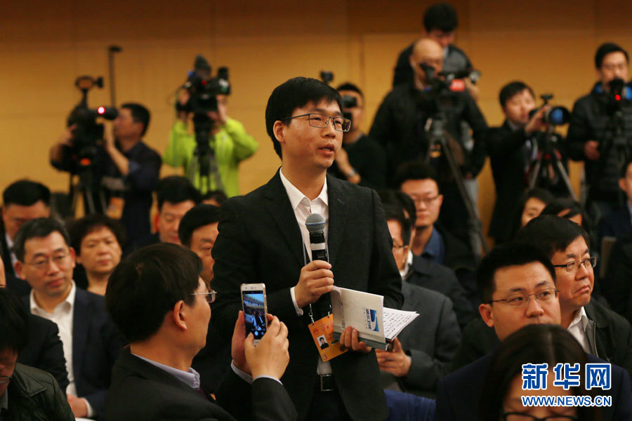 3月14日,十二屆全國人大五次會議新聞中心舉行記者會,邀請國家質(zhì)檢總局局長支樹平、副局長兼國家認證認可監(jiān)督管理委員會主任孫大偉、國家標(biāo)準化管理委員會主任田世宏就“質(zhì)量提升”的相關(guān)問題回答中外記者的提問。圖為湖北衛(wèi)視記者提問。新華網(wǎng)/中國政府網(wǎng) 傅義洲 攝?