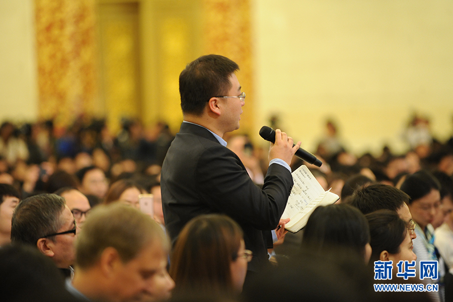 3月15日上午,國(guó)務(wù)院總理李克強(qiáng)在人民大會(huì)堂三樓金色大廳會(huì)見(jiàn)采訪十二屆全國(guó)人大五次會(huì)議的中外記者并回答記者提出的問(wèn)題。圖為中央人民廣播電臺(tái)記者提問(wèn)。新華網(wǎng)/中國(guó)政府網(wǎng) 翟子赫 攝?