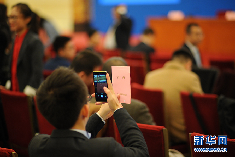 3月15日上午,國(guó)務(wù)院總理李克強(qiáng)在人民大會(huì)堂三樓金色大廳會(huì)見(jiàn)采訪十二屆全國(guó)人大五次會(huì)議的中外記者并回答記者提出的問(wèn)題。圖為在記者會(huì)現(xiàn)場(chǎng)等待的記者。新華網(wǎng)/中國(guó)政府網(wǎng) 翟子赫 攝