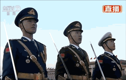 走在國旗手與護(hù)旗隊中間的分隊長,此次從一名增加到了三名,他們分別身著陸??哲姸Y服,配掛指揮刀,代表解放軍全軍,負(fù)責(zé)發(fā)出升國旗口令。
