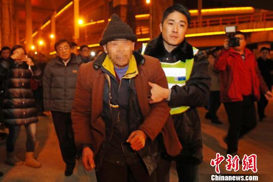 生活無(wú)著露宿街頭人員在救助工作人員的幫助下前往救助站避寒?!∫罅⑶?攝