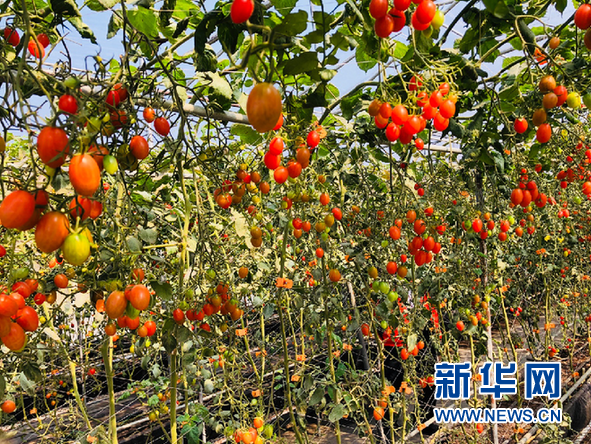 松樹崗村“空中田園”里正值采摘季的玉女番茄。 新華網(wǎng) 卓越 攝