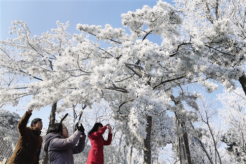 1月23日,游人在濟南跑馬嶺景區(qū)觀賞霧凇美景。當日,受持續(xù)大霧天氣和強冷空氣的影響,濟南跑馬嶺景區(qū)出現(xiàn)霧凇景觀。呂傳泉攝(新華社 發(fā))