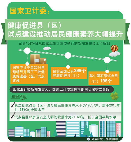 圖表:國(guó)家衛(wèi)計(jì)委:健康促進(jìn)縣(區(qū))試點(diǎn)建設(shè)推動(dòng)居民健康素養(yǎng)大幅提升 新華社發(fā) 大巢制圖