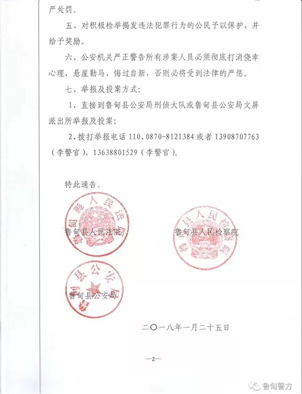 魯?shù)榭h公檢法聯(lián)合發(fā)布通告