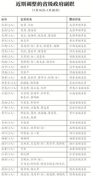 新京報記者梳理發(fā)現(xiàn),自1月16日以來,27個省份共調(diào)整省級政府副職70名。